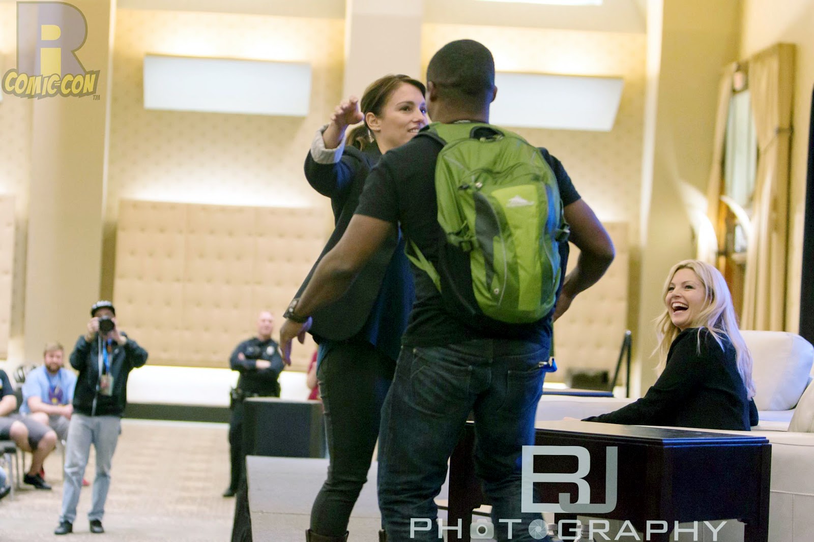 Depois de um fã dizer que em Nova York, Amy é uma das atrizes mais solicitadas para aparecer na Comic Con, chegou a vez da ultima pergunta. Mas não foi bem uma pergunta, um fã foi ousado e fez um pedido, se ela poderia dizer a famosa frase de transformação e morfar em publico.